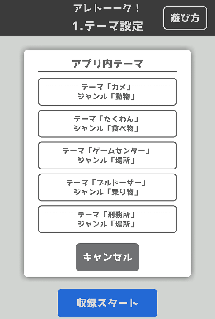 - アプリ内のテーマ、または司会者が考えたテーマを設定します